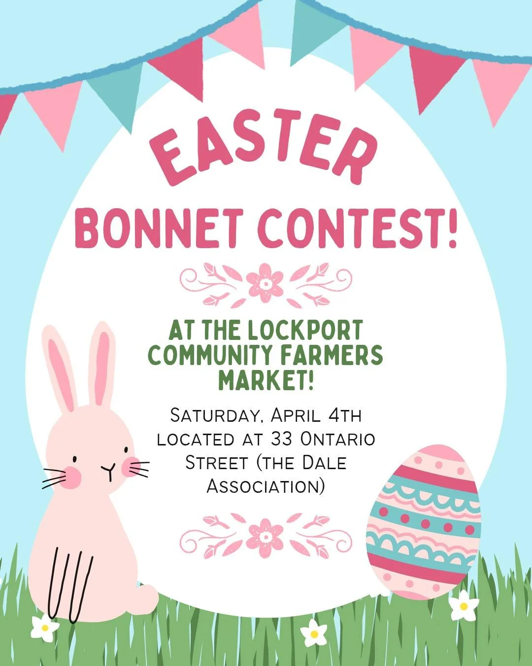 Wear your best home made Easter Bonnet while you hop down the bunny trail for a chance to win a jellycat stuffie at the Easter Bonnet Contest during the Lockport Community Farmers Market on April 4th, 2026!