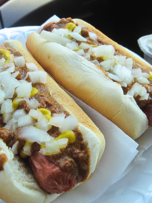 Offering hot dogs, hamburgers, french fries, onion rings, and milkshakes.