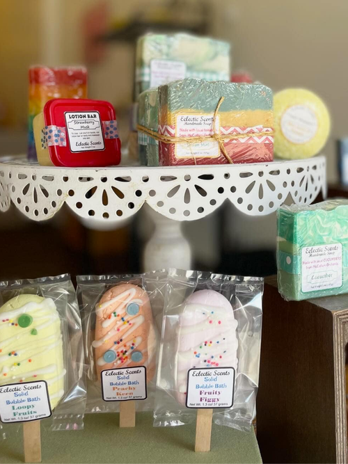 Shop handmade bath and body products, including soaps, lip balms, wax melts, and more.