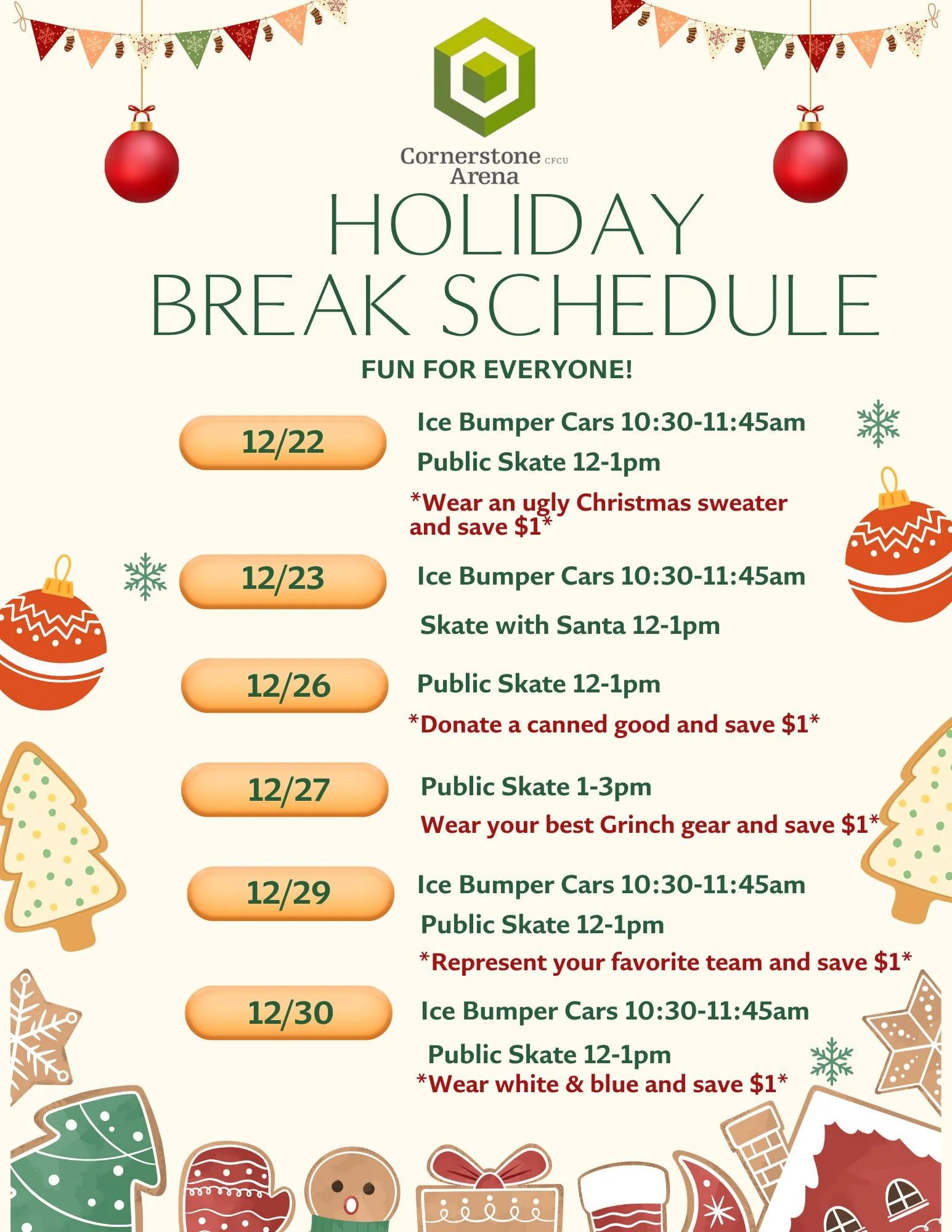 Cornerstone CFCU Arena has Winter Break covered! Check out their daily event schedule and keep the fun rolling all break long!