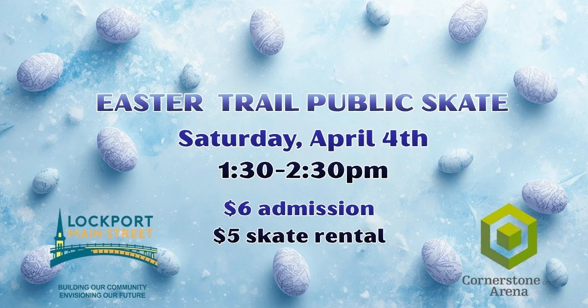 Be sure to take part in the Lockport Main Street Easter Trail on Saturday, April 4th, then hop on down to Cornerstone Ice Arena for Public Skate at 1:30 PM!